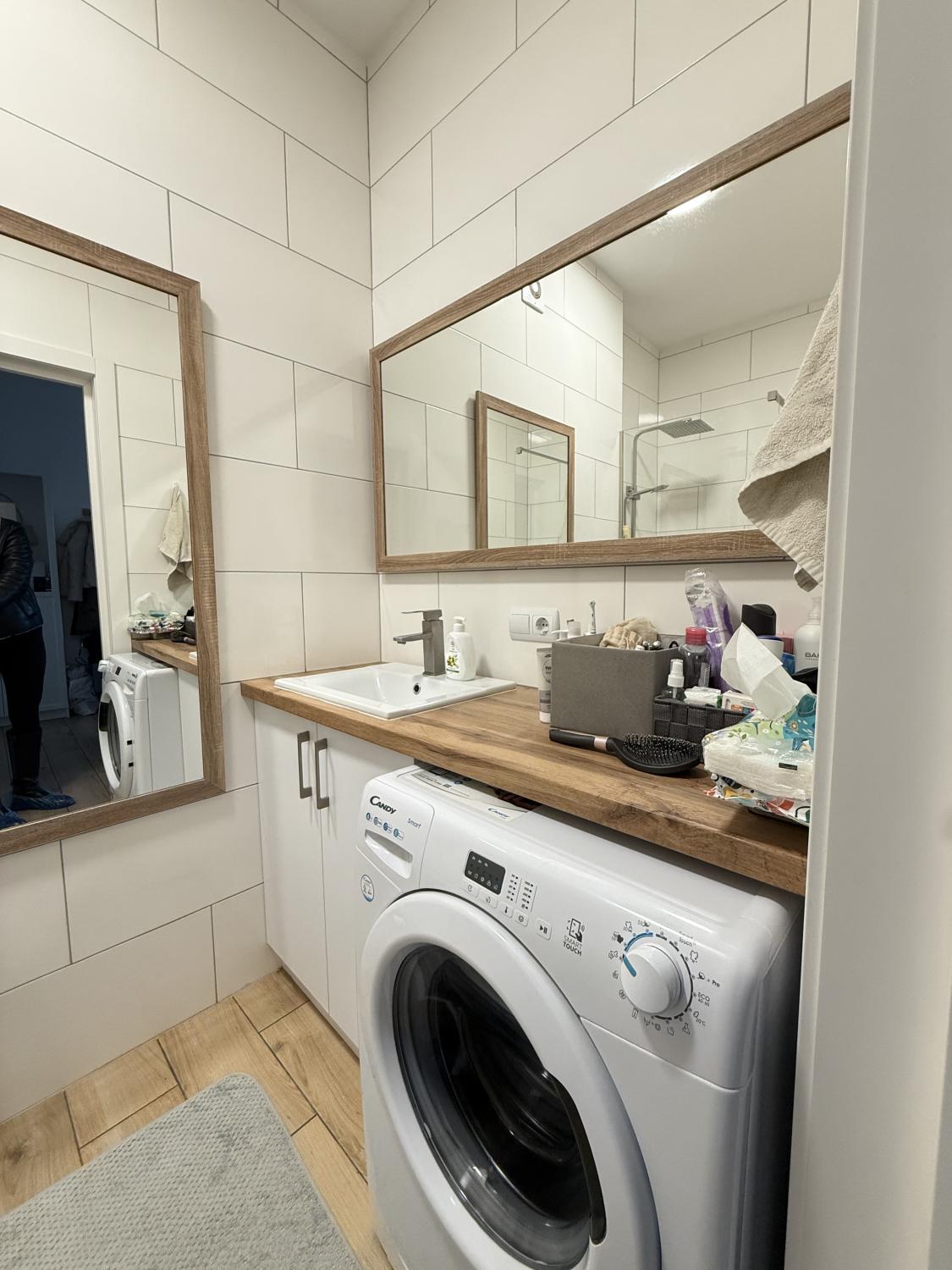 У квартирі виконано сучасний ремонт, встановлено вмонтовану кухню та всю необхідну побутову техніку. Є двоспальне ліжко, квартира повністю готова до заселення.