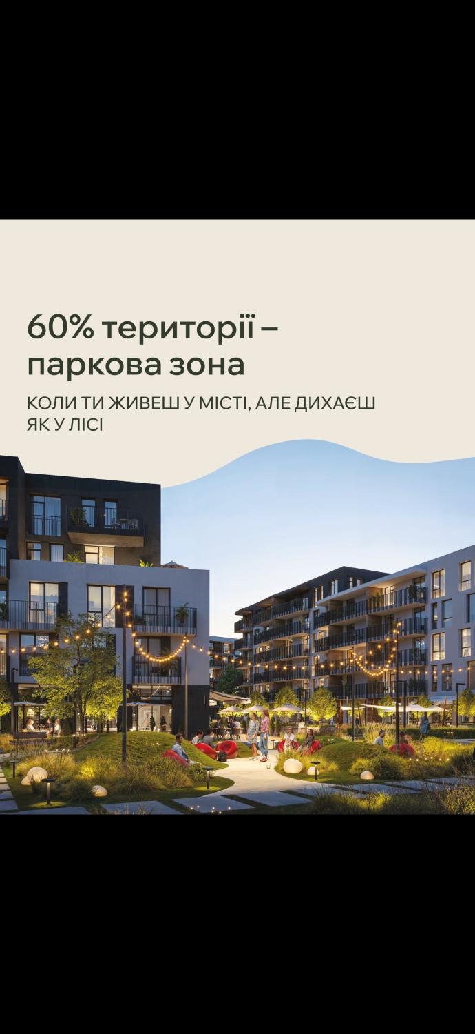 • 60% території — зелена паркова зона.