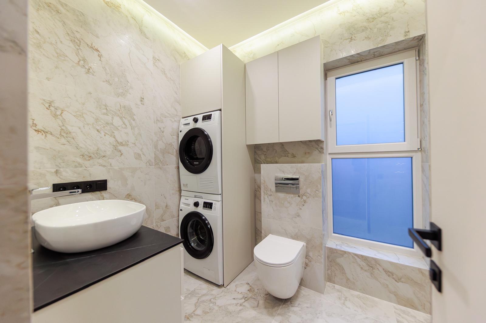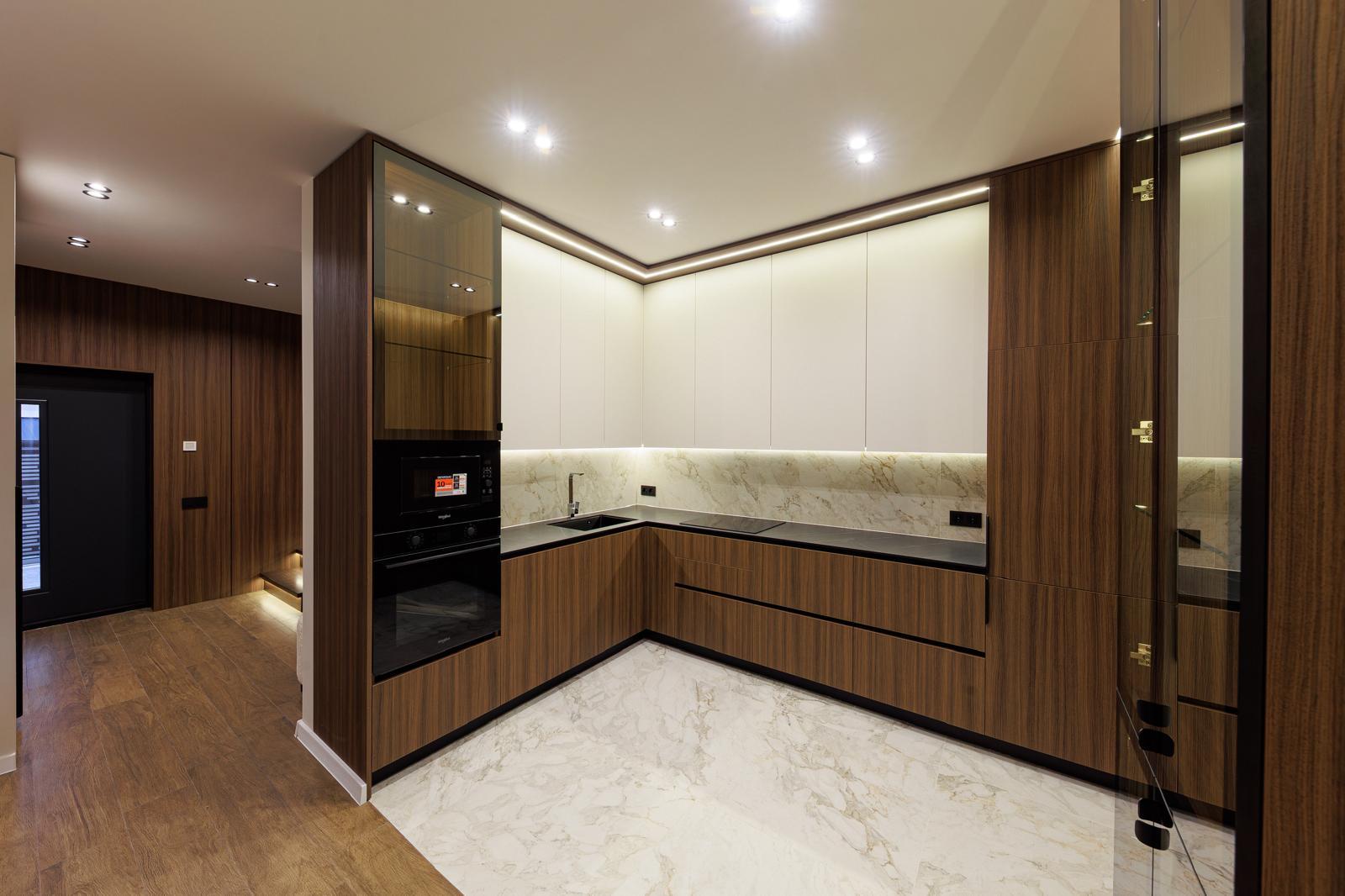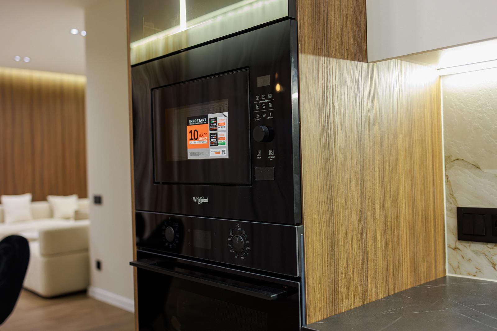 Побутова техніка: плазмовий телевізор, варильна панель, духовка електрична, холодильник, витяжка, посудомийна машина, пральна машина в санвузлі, кондиціонер;