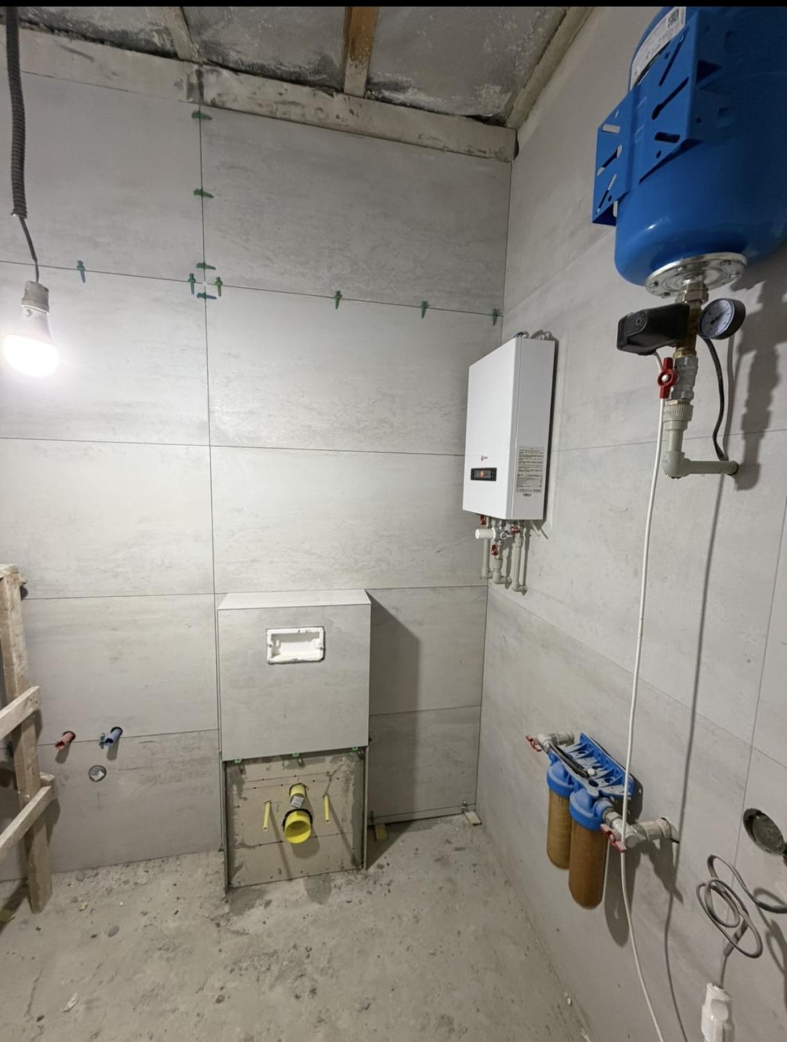 У одному санвузлі вже викладена плитка