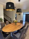 Інтер’єр виконаний у сучасному стилі з використанням якісних матеріалів. Будинок повністю укомплектований меблями та побутовою технікою — все залишається новому власнику.